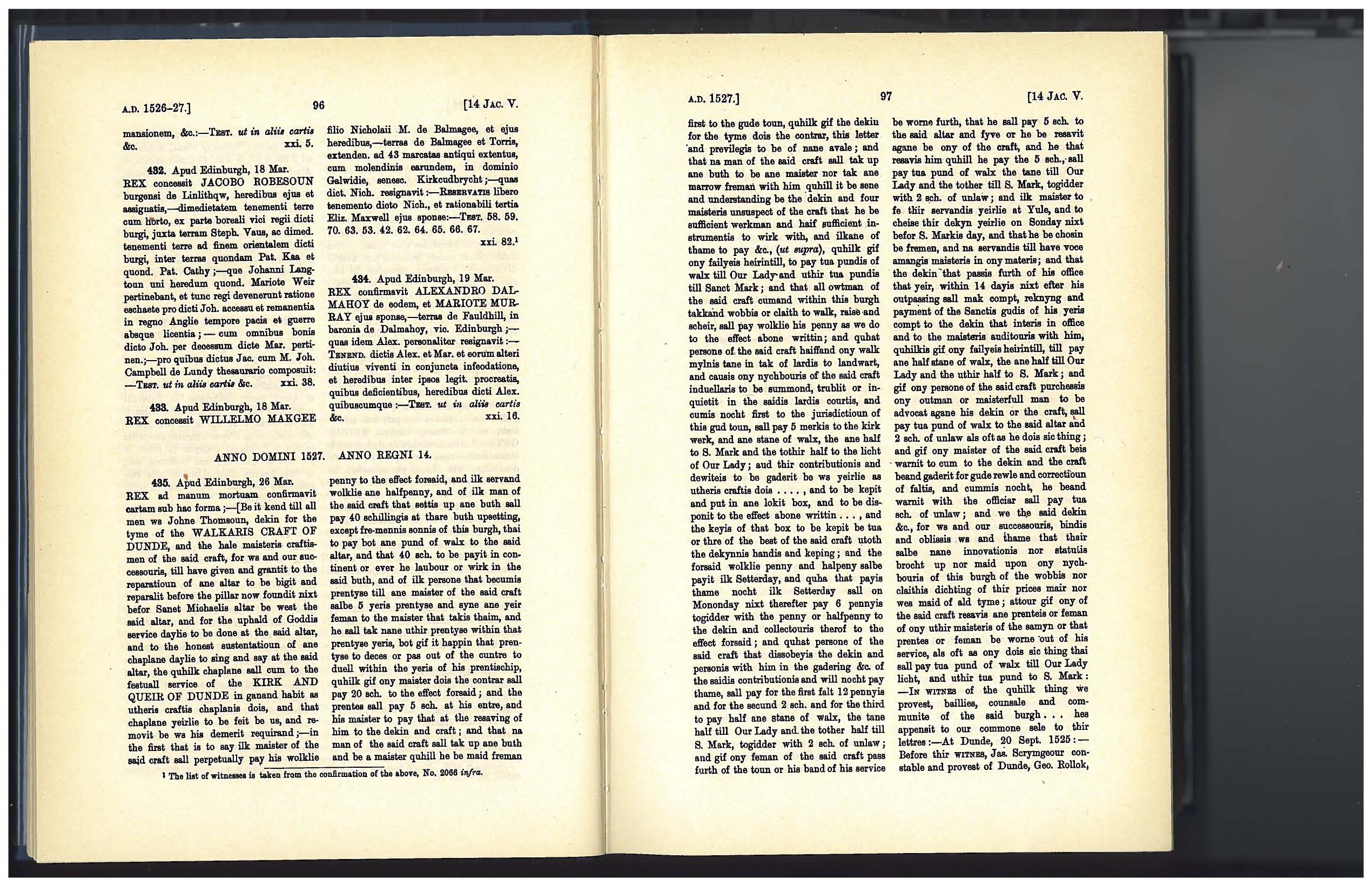 The wording of the oath is similar to that of most of the other Crafts, suggesting that the clergy had a hand in the formulating of them. In particular the use of the phrase regarding religion as “presently profest amongst us” allows for all the changes taking place in religion in Scotland over the years before and after the Reformation. Dundee was in the vanguard of these changes and was known across Europe as “The Geneva of the North”.